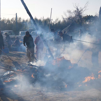 「とんど焼き」は一年の無病息災を祈るために、瀬戸内海に浮かぶ大三島で毎年行われている行事である。村の人びとは協力し合いながら、高さ約8メートル、幅約3メートルのとんどを作り、全員で空き地まで引いたあとに火を放つ。火を起こし、火を囲み、そして火を食べる——火にまつわる人の営みからその場所の歴史、人間の根源的な習性を思索する。